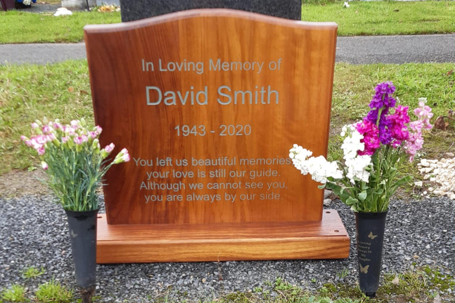 Crafted from premium hardwood our memorials are built to last 50+ years untreated. Protected with marine-grade two-part varnish (Sikkens HLS and Filter 7), they withstand the UK and Irish climate with grace.